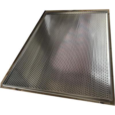 Our stainless Steel perforated baking tray is widely used in food field, such as the drying and dehydration for fruit, vegetables, also, used for food field, such as baking, tray for oven, etc. Customized logo can be added on the tray as per customers' requirements.Hole size of the perforated tray, customers usually choose 3mm, 5mm one, and then 5mm, 8mm hole distance, customized one is available.The most important, we can make a customized size and design perforated tray as per customers' drawings.